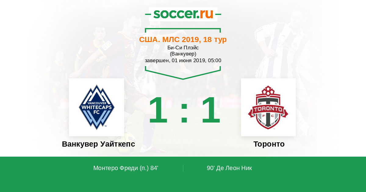 Протокол матча Ванкувер Уайткепс против Торонто