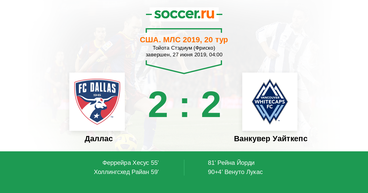 Протокол матча Даллас против Ванкувер Уайткепс