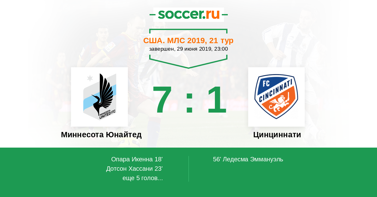 Протокол матча Миннесота Юнайтед против Цинциннати