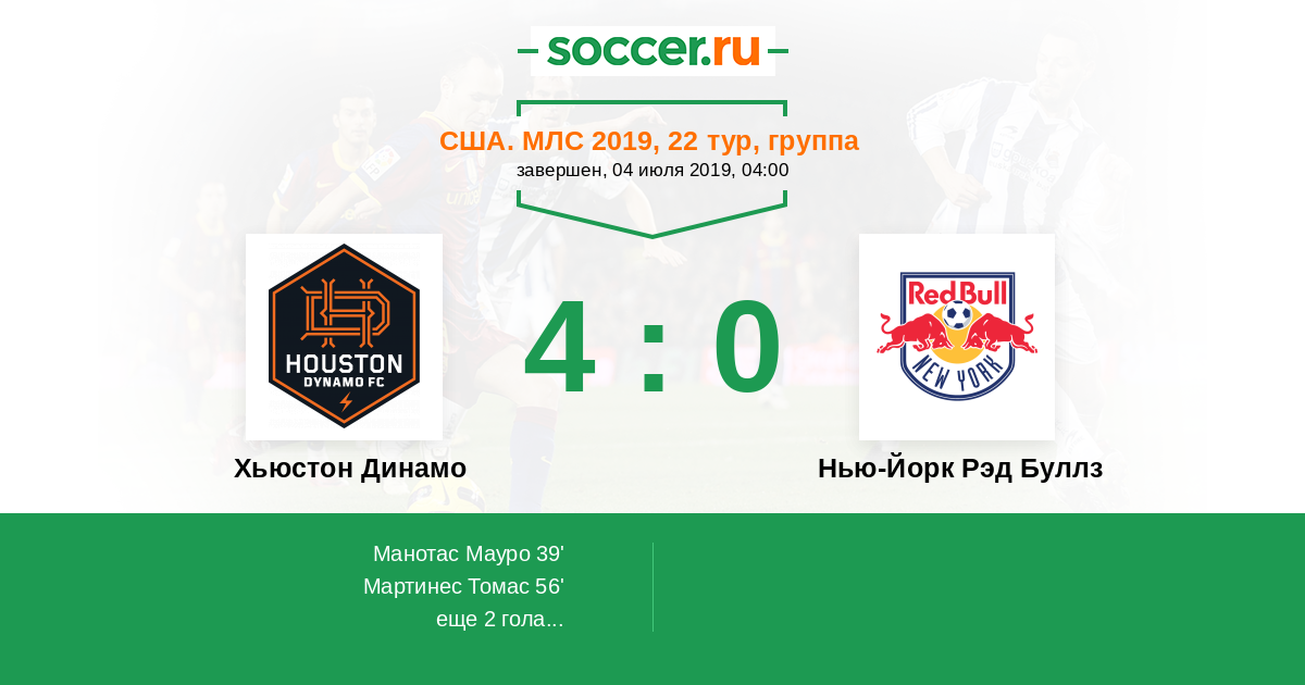 Протокол матча Хьюстон Динамо против Нью-Йорк Рэд Буллз
