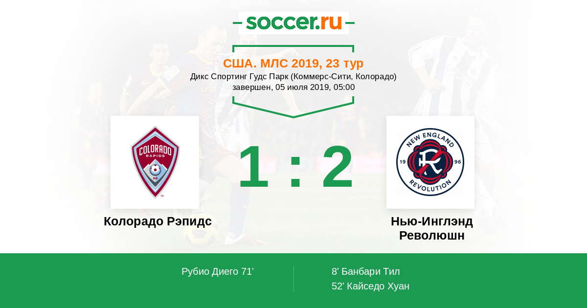 Протокол матча Колорадо Рэпидс против Нью-Инглэнд Революшн