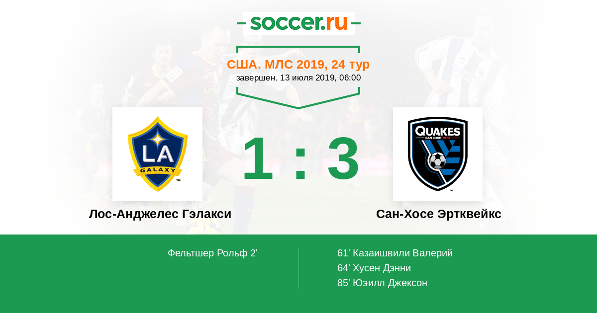Протокол матча Лос-Анджелес Гэлакси против Сан-Хосе Эртквейкс