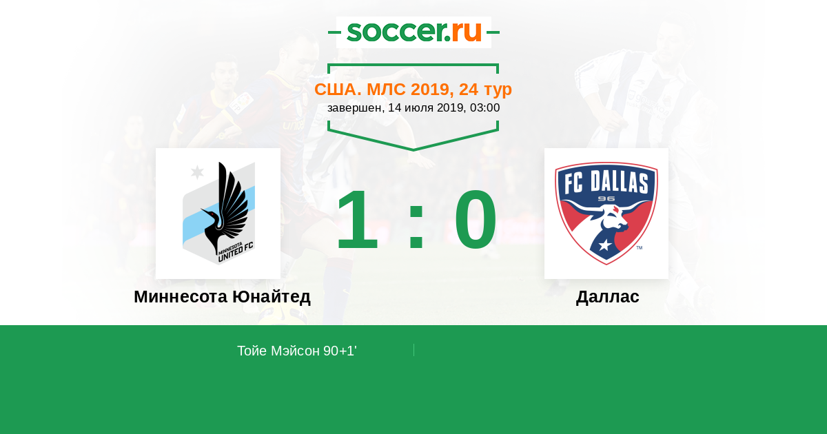 Протокол матча Миннесота Юнайтед против Даллас