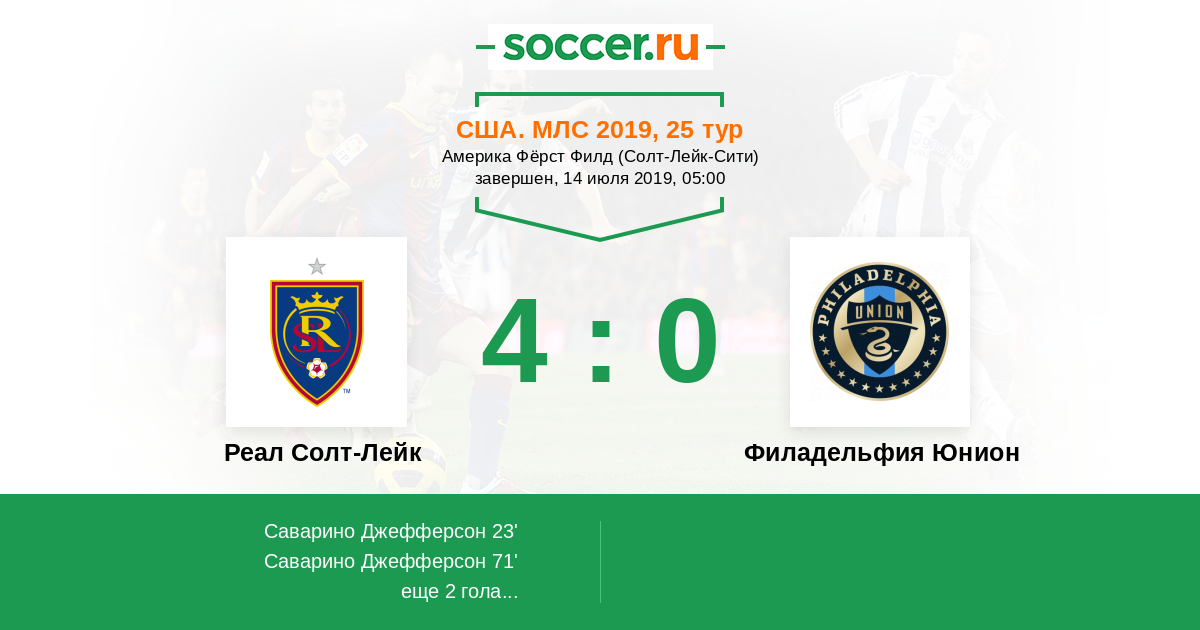 Протокол матча Реал Солт-Лейк против Филадельфия Юнион