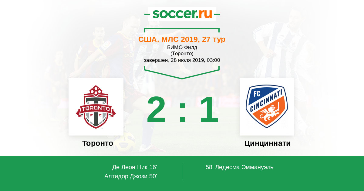 Протокол матча Торонто против Цинциннати