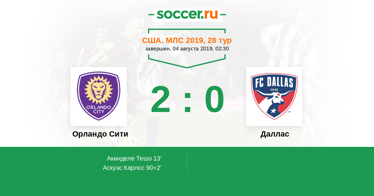 Протокол матча Орландо Сити против Даллас