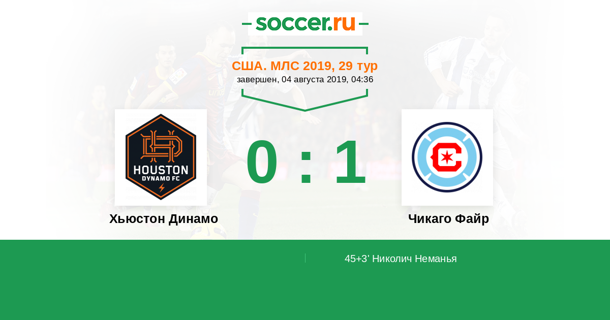 Протокол матча Хьюстон Динамо против Чикаго Файр