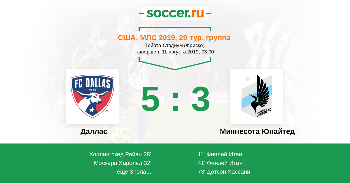 Протокол матча Даллас против Миннесота Юнайтед