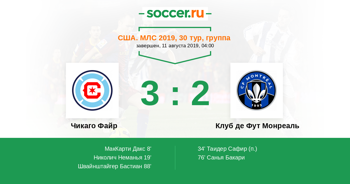 Протокол матча Чикаго Файр против Клуб де Фут Монреаль