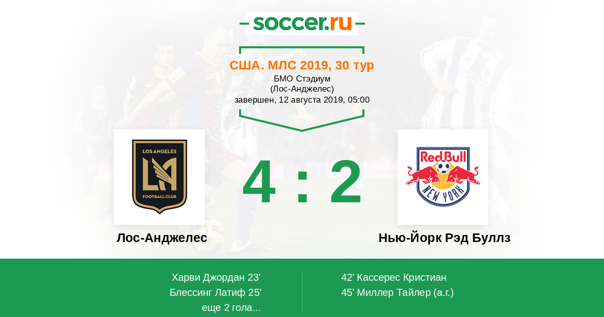 Протокол матча Лос-Анджелес против Нью-Йорк Рэд Буллз