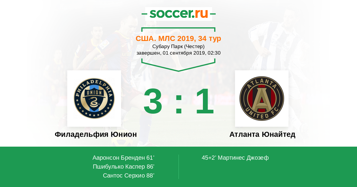 Протокол матча Филадельфия Юнион против Атланта Юнайтед
