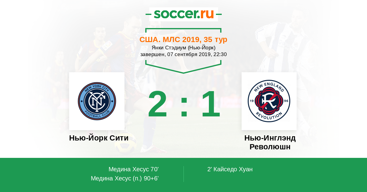 Протокол матча Нью-Йорк Сити против Нью-Инглэнд Революшн
