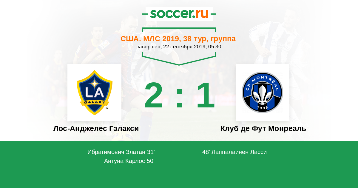 Протокол матча Лос-Анджелес Гэлакси против Клуб де Фут Монреаль