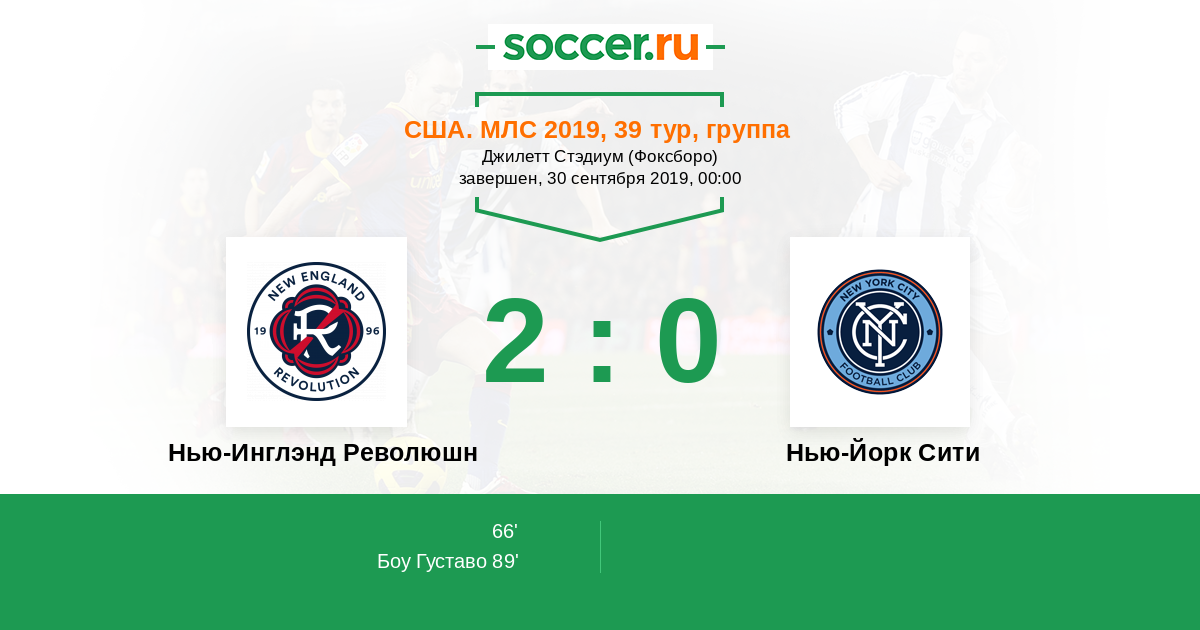 Протокол матча Нью-Инглэнд Революшн против Нью-Йорк Сити