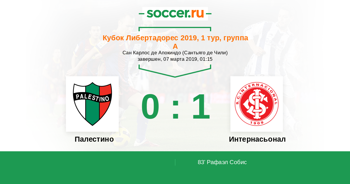 Протокол матча Палестино против Интернасьонал