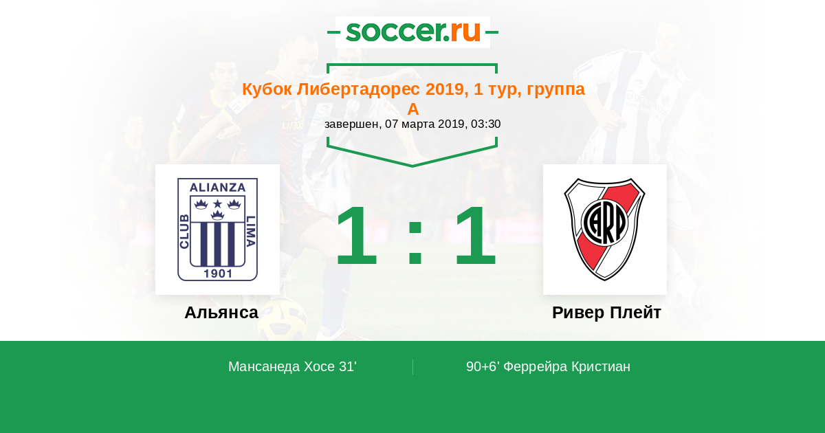 Протокол матча Альянса против Ривер Плейт