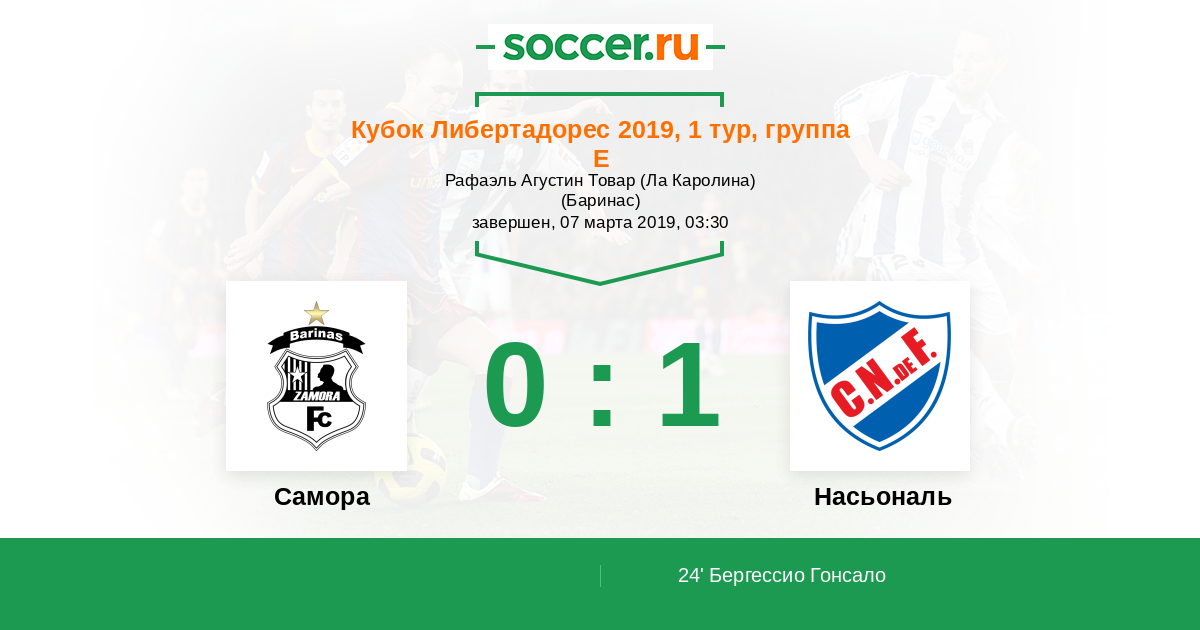 Протокол матча Замора против Насьональ