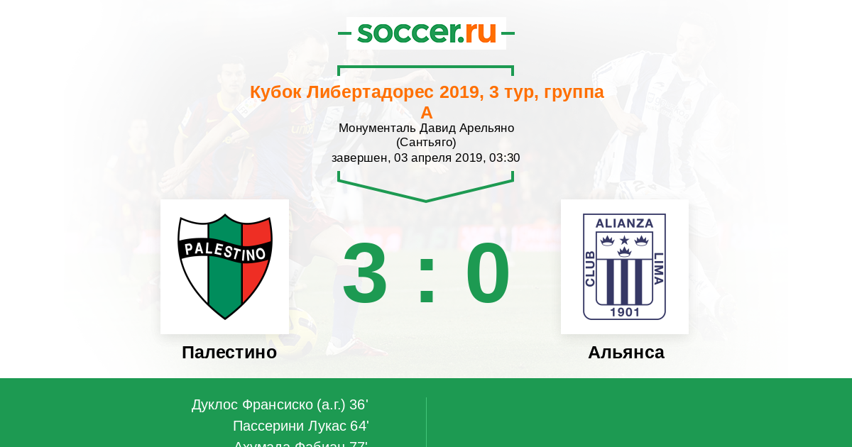 77' (3:0) Ахумада Фабиан (15) (Пассерини Лукас (9))