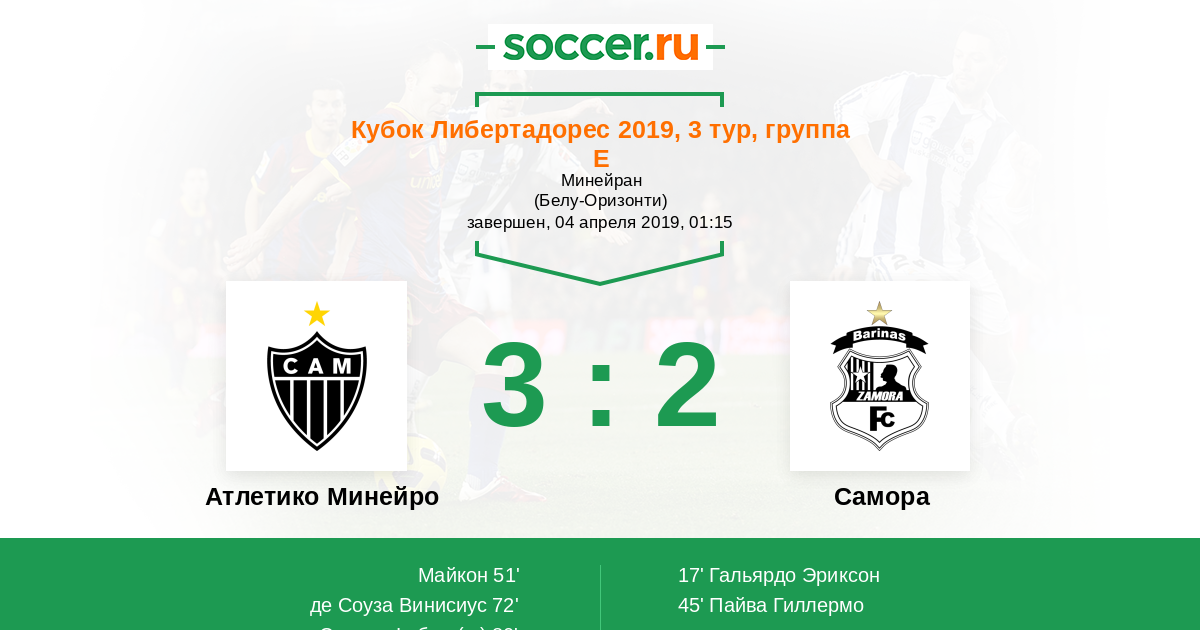 72' (2:2) де Соуза Винисиус (18) (Оливейра Рикардо (9))
