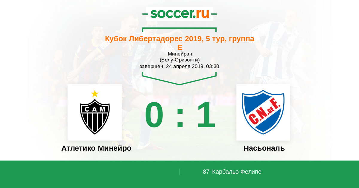 Протокол матча Атлетико Минейро против Насьональ