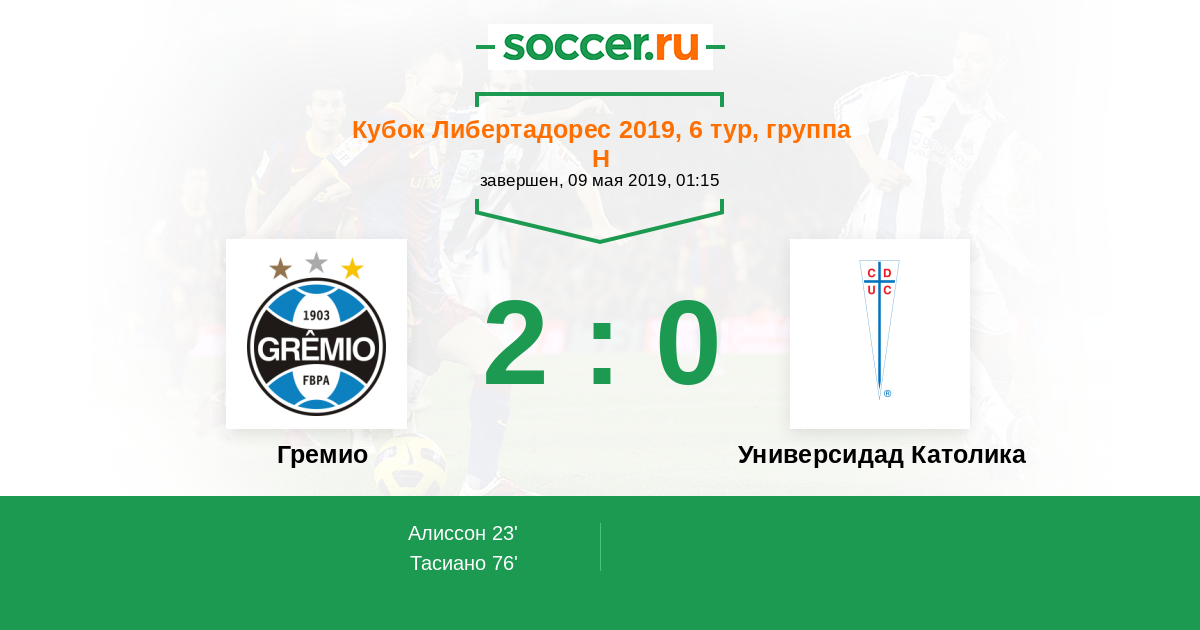Протокол матча Гремио против Универсидад Католика