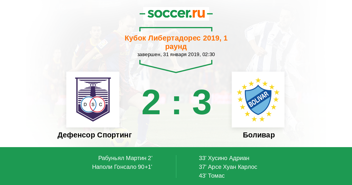 Протокол матча Дефенсор Спортинг против Боливар