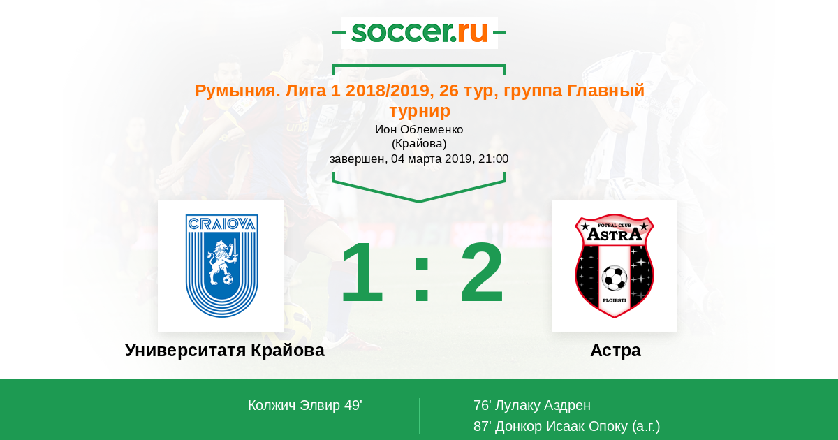 76' (1:1) Лулаку Аздрен (10) (Белу-Йордаче Клаудиу (70))
