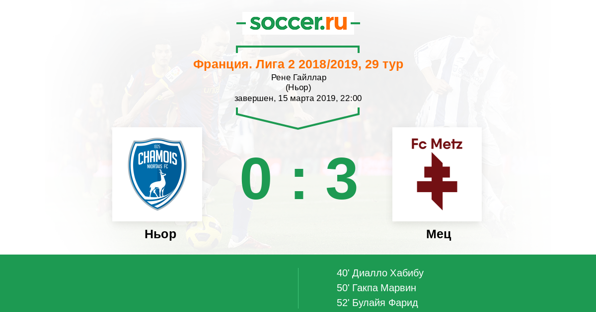 Протокол матча Ньор против Мец