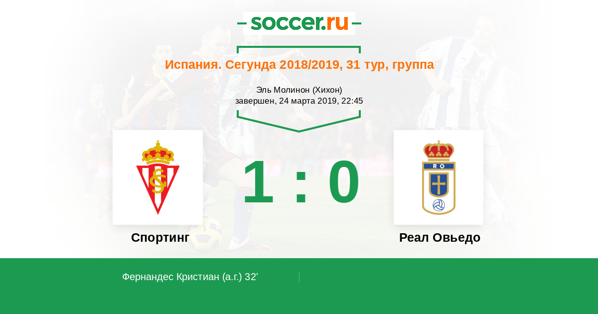 32' (1:0) Автогол Фернандес Кристиан (18)