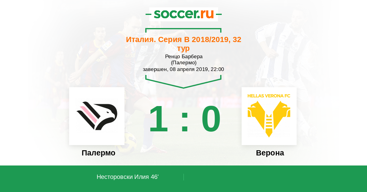 46' (1:0) Несторовски Илия (30) (Морео Стефано (9))