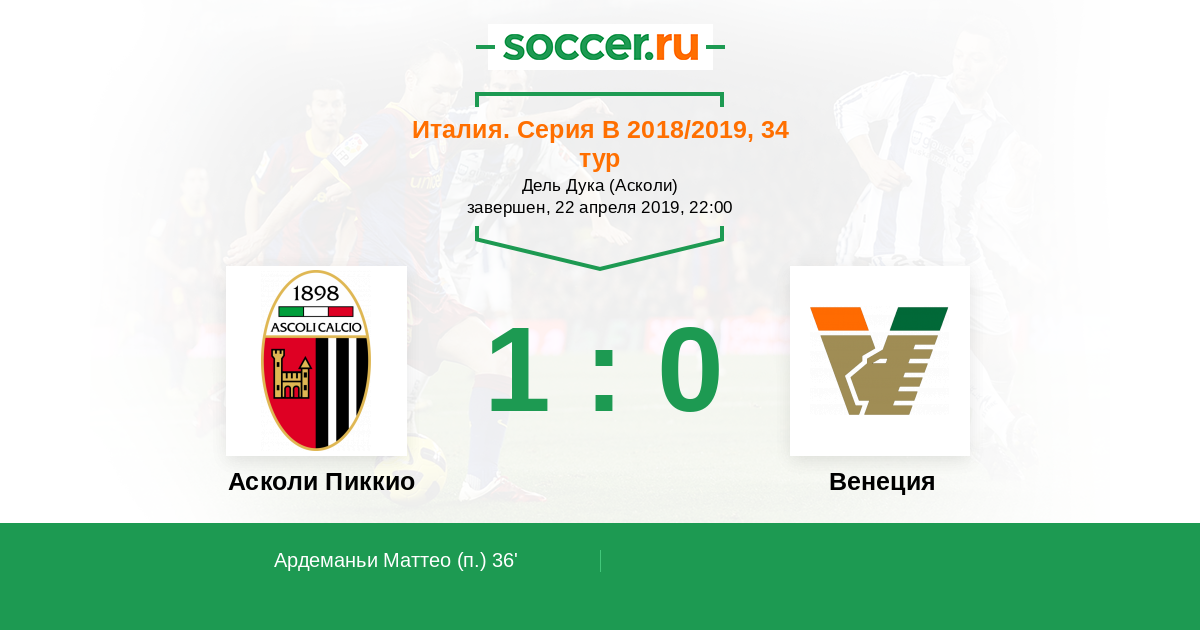 Протокол матча Асколи Пиккио против Венеция