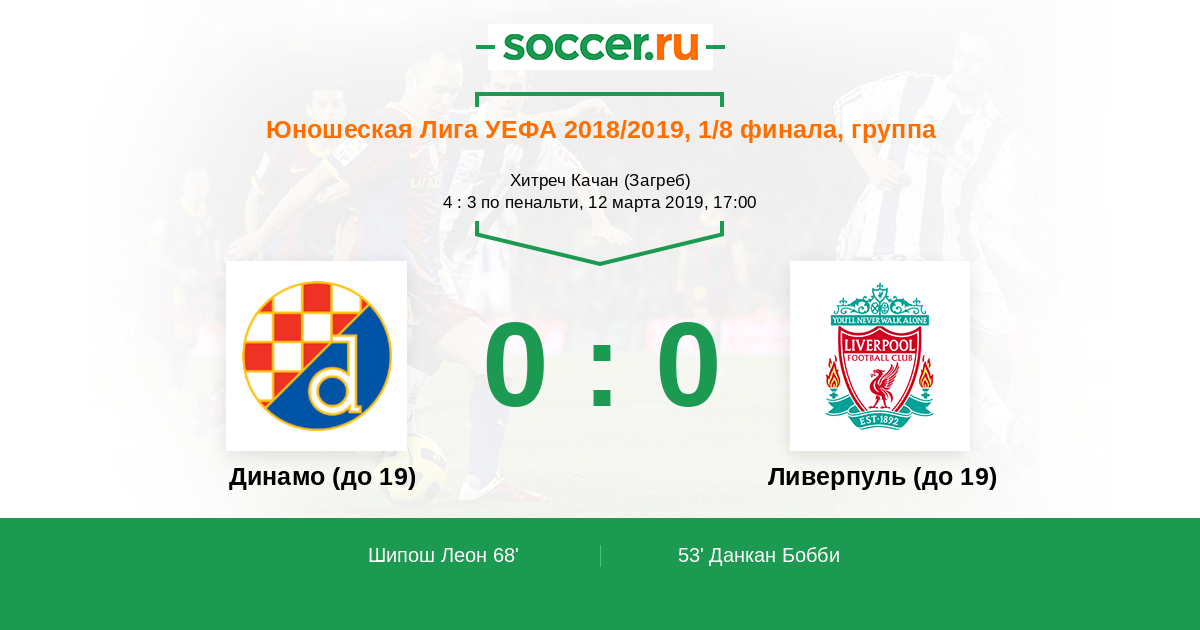 Протокол матча Динамо (до 19) против Ливерпуль (до 19)
