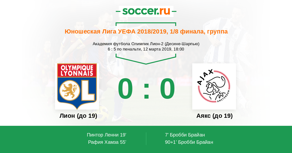 Протокол матча Лион (до 19) против Аякс (до 19)