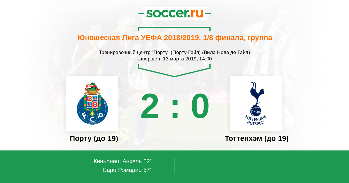 Протокол матча Порту (до 19) против Тоттенхэм (до 19)
