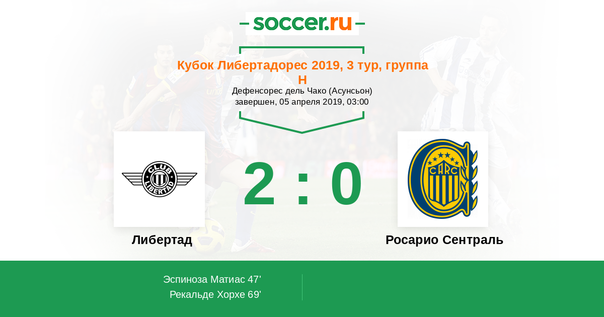 Протокол матча Либертад против Росарио Сентраль