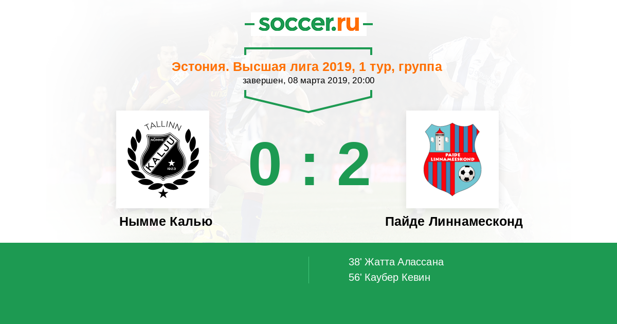 Протокол матча Нымме Калью против Пайде Линнамесконд