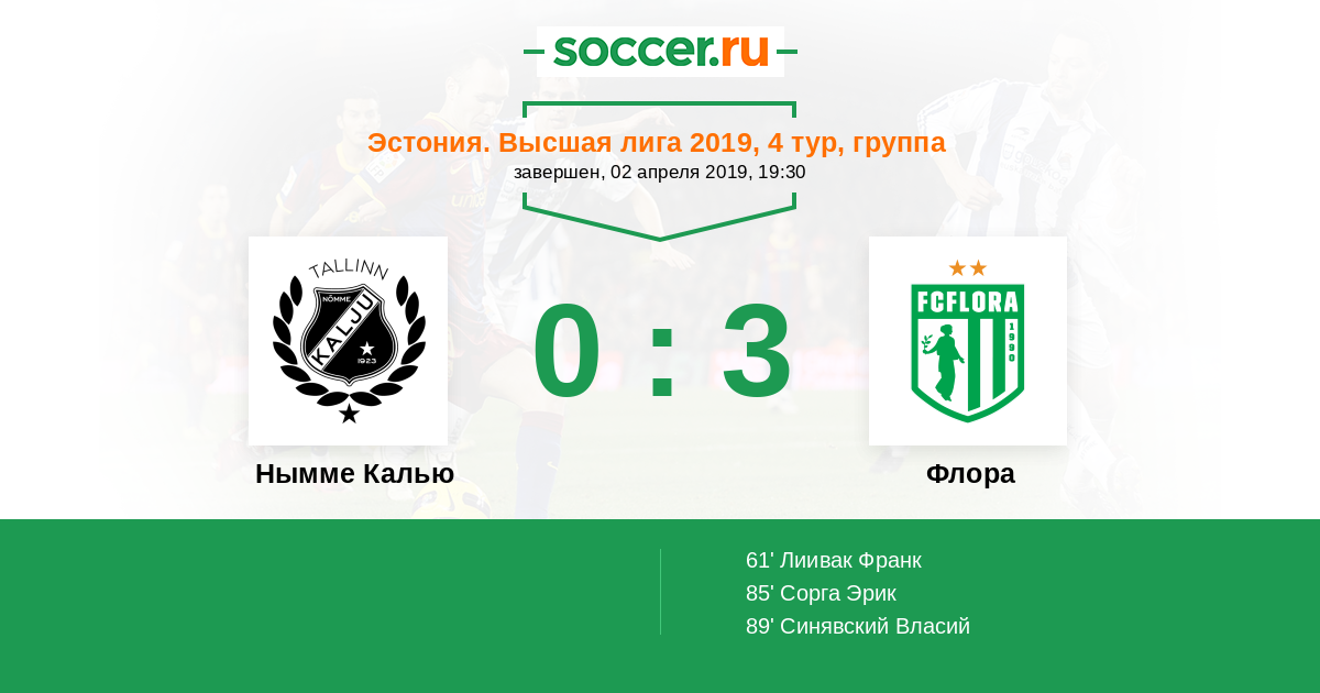 Протокол матча Нымме Калью против Флора