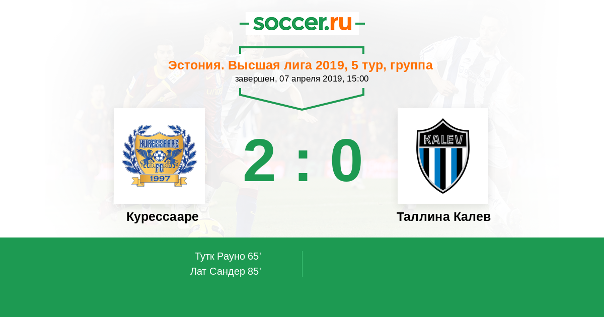 Протокол матча Курессааре против Таллина Калев