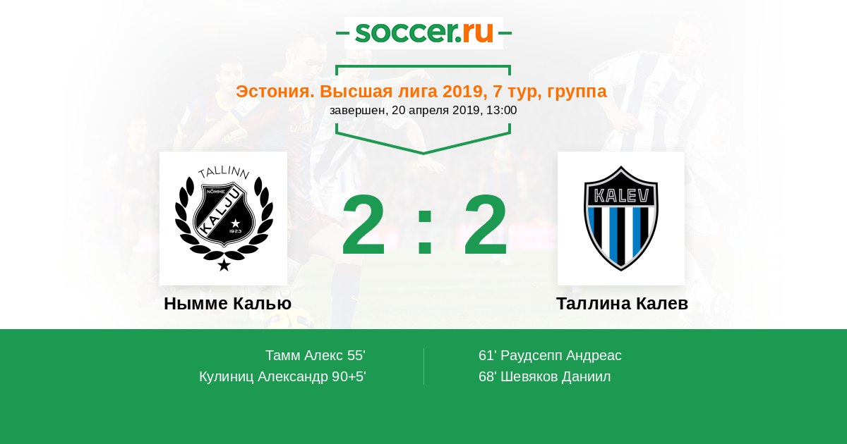 Протокол матча Нымме Калью против Таллина Калев