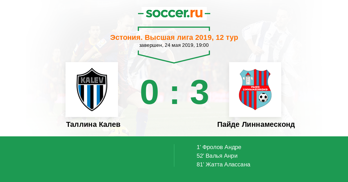 Протокол матча Таллина Калев против Пайде Линнамесконд
