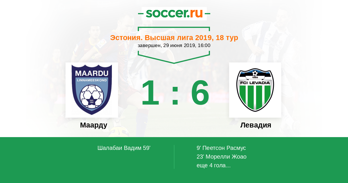 Протокол матча Маарду против Левадия