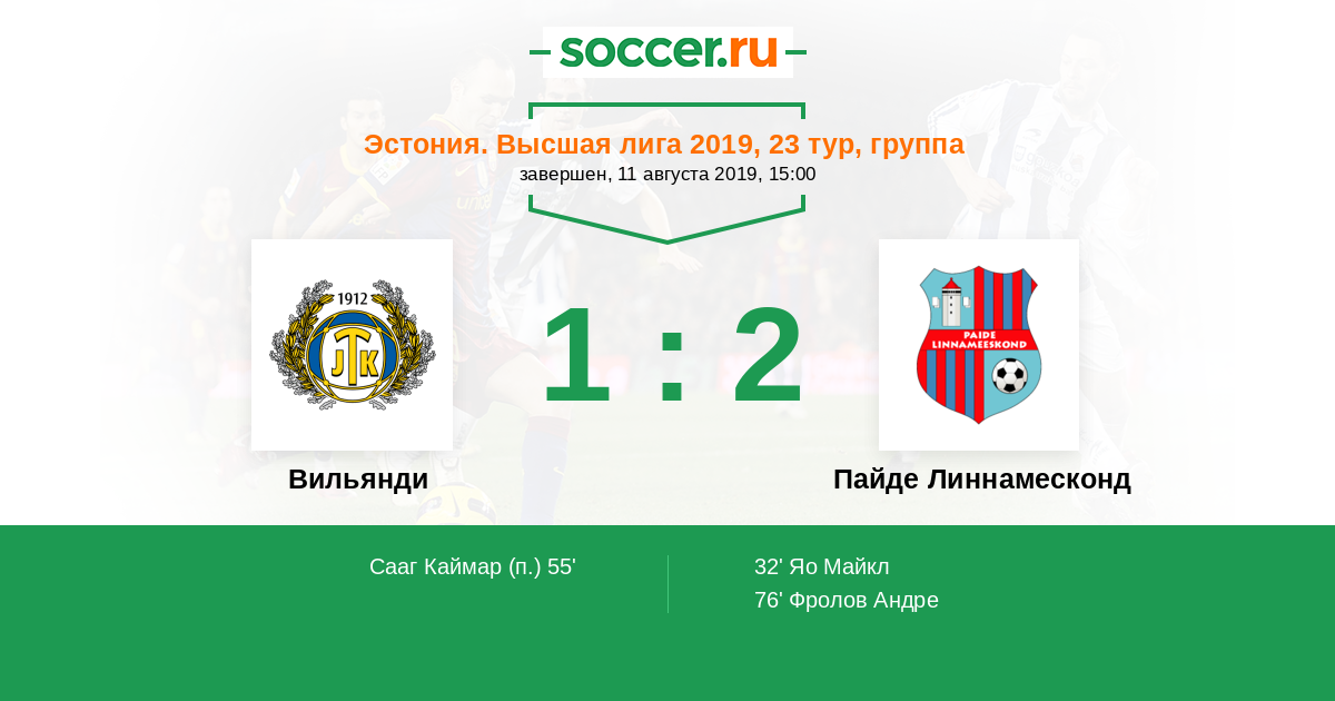 Протокол матча Вильянди против Пайде Линнамесконд