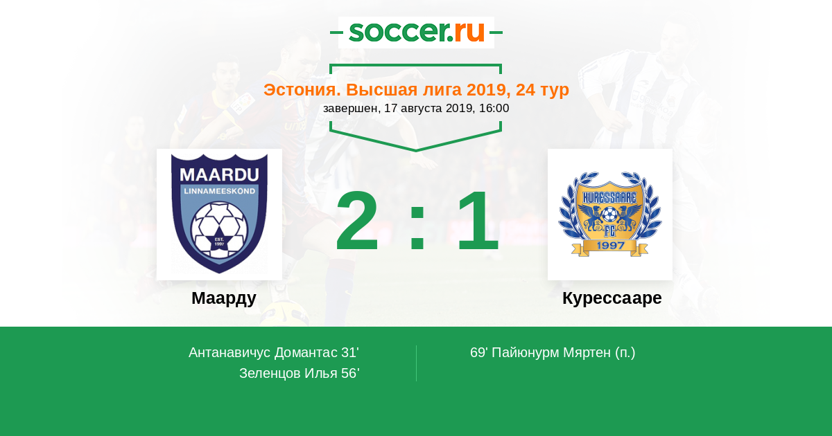 Протокол матча Маарду против Курессааре