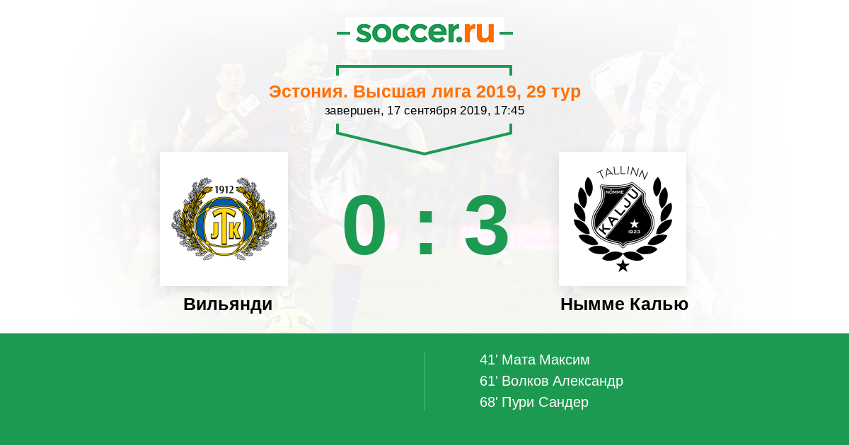 Протокол матча Вильянди против Нымме Калью