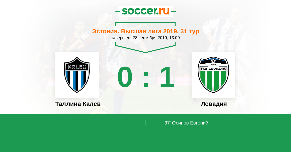 Протокол матча Таллина Калев против Левадия