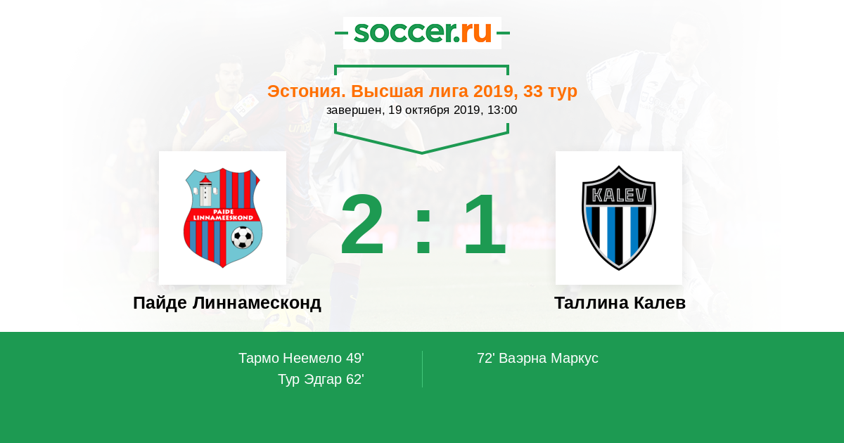 Протокол матча Пайде Линнамесконд против Таллина Калев