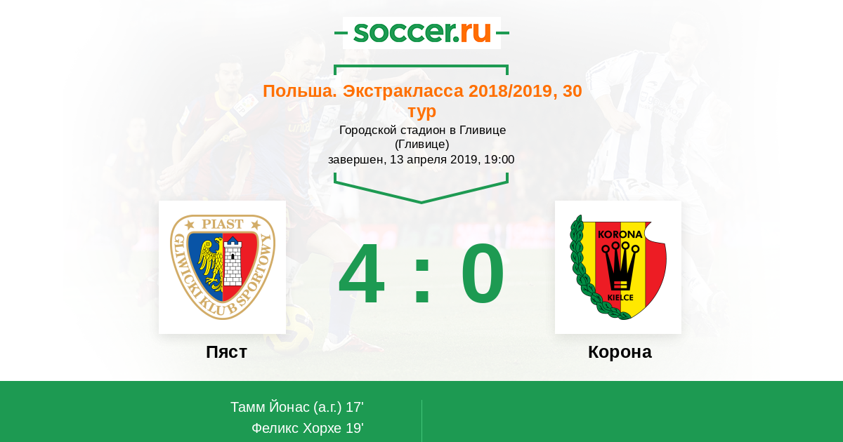 Протокол матча Пяст против Корона