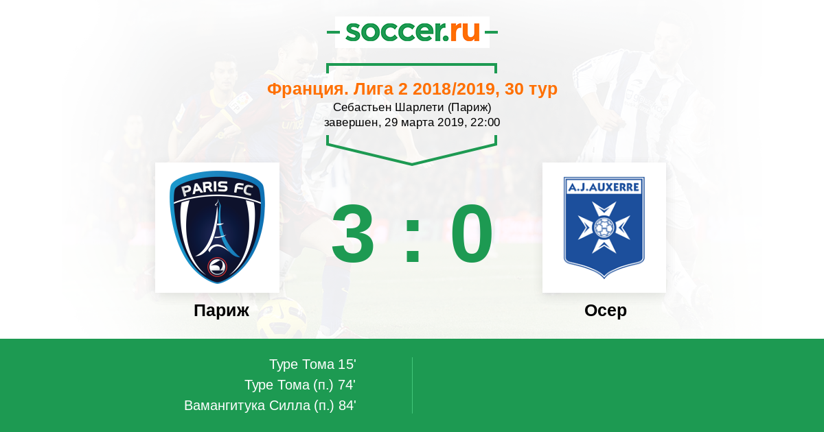 Протокол матча Париж против Осер