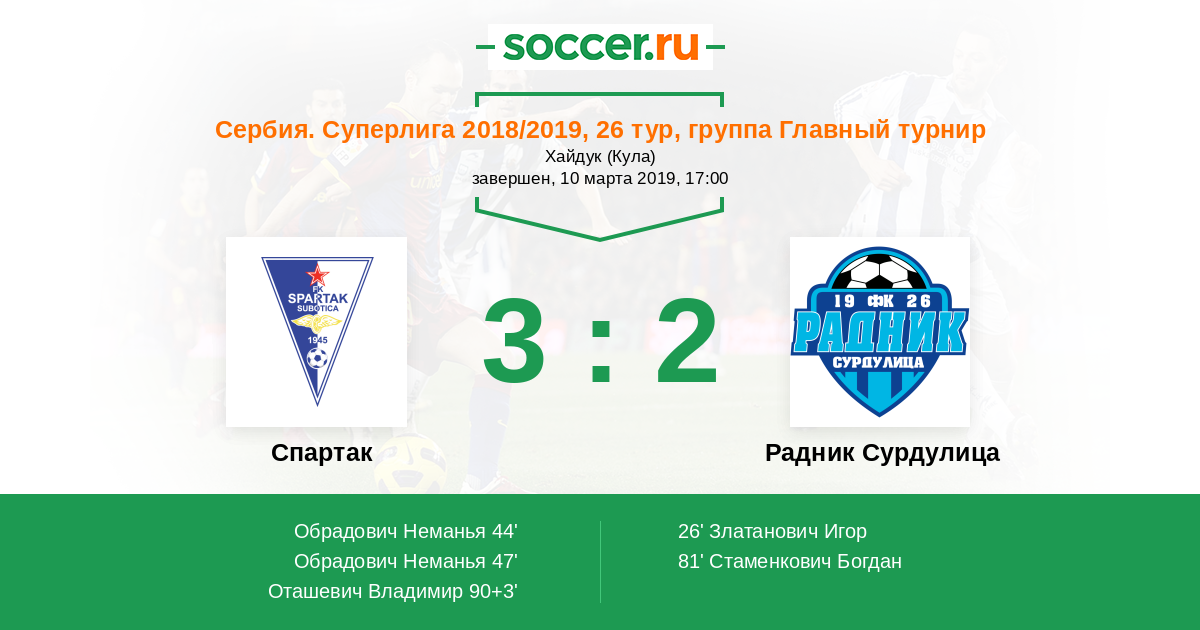 Протокол матча Спартак Суботица против Радник Сурдулица
