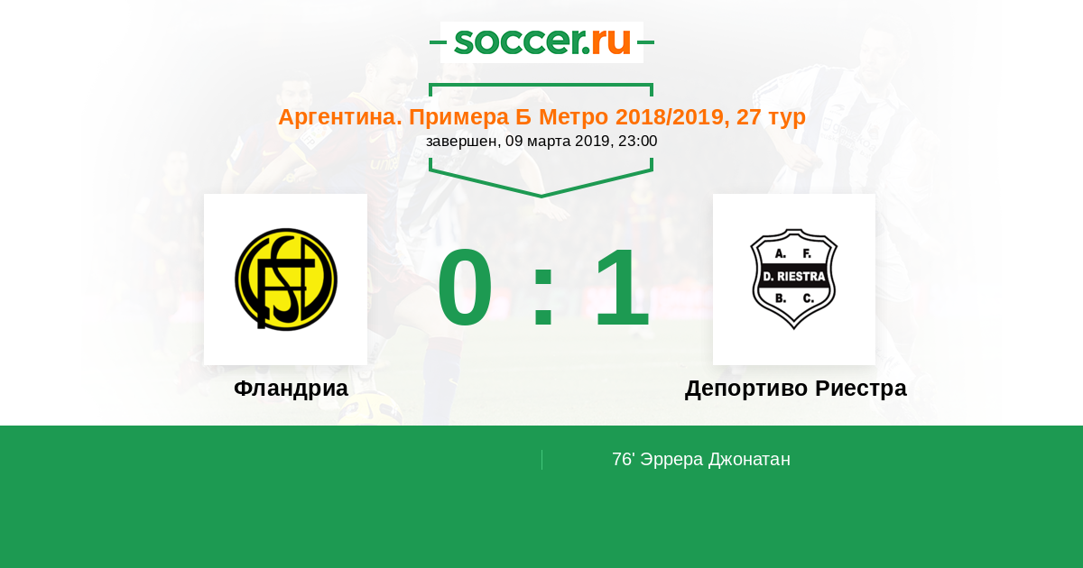 Протокол матча Фландриа против Депортиво Риестра